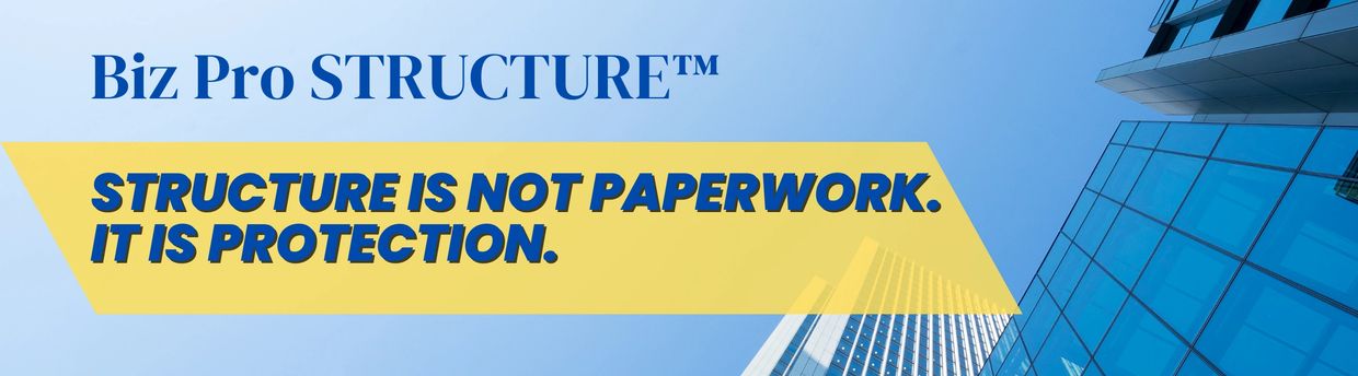 Most businesses do not fail from lack of effort or opportunity. They fail because no one is responsible for installing and overseeing the infrastructure that governs compliance, financial control, and operational clarity. Biz Pro STRUCTURE™ exists to serve as that oversight—quietly establishing the systems, controls, and discipline required for a business to operate in good standing, withstand scrutiny, and grow with intention.